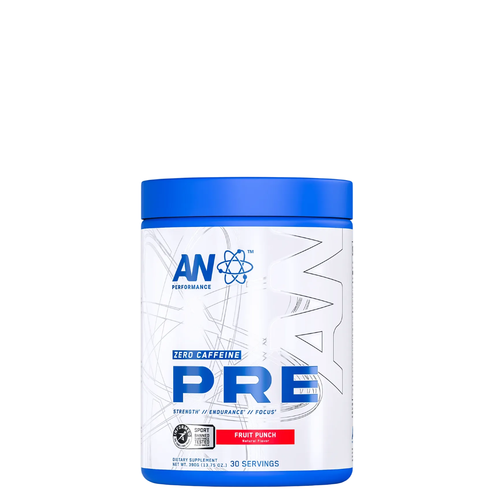 Who says "stimulant-free" should mean "zero-energy"?! At AN Performance, we're redefining the game with our Non-Stim Pre-Workout formula, here to impact your every moment, regardless of the time. It's based upon our caffeinated pre-workout, but with an added twist. The AN Non-Stim Pre-Workout starts with the classic blend of 6g of L-Citrulline, 3.2g of Beta-Alanine, 2.5 grams of Betaine, 2 grams of taurine, and electrolytes from sodium and potassium. This powerful combination supports blood flow, power output, and fluid balance, ensuring you're primed for peak performance. But where we shift gears is by including Peak ATP - literal cellular energy in the form of disodium ATP -when dropping the 300mg caffeine from PurCaf. Peak ATP goes beyond simple energy, supporting improved blood flow, peak power, total strength, and lean body mass. Paired with the highly-experiential trifecta of L-Tyrosine (2g), Cognizin Citicoline (500mg), NeuroRush coffee fruit extract (100mg), you'll be fully present in the moment… so that you can seize the moment. With a formula like this, you no longer need tons of caffeine to feel energy. Athletic supplement users want experiential products they can feel, a challenge in the lower-stimulant space. But it's a challenge we've overcome, because the AN Performance Zero-Caffeine Pre-Workout can be felt -and it's here to fuel your moment, day or night.