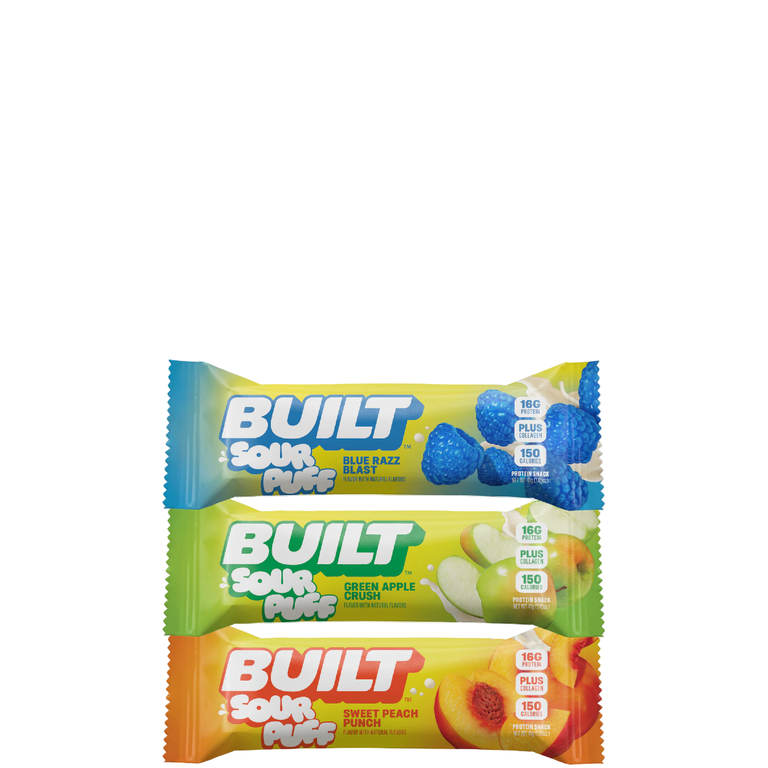 Introducing BUILT Sour Puff! The marshmallowy, protein-packed, goodness of BUILT Puff you know and love, with a tangy center -- a sweet and tart coating -- and topped with crunchy sugar sprinkles!