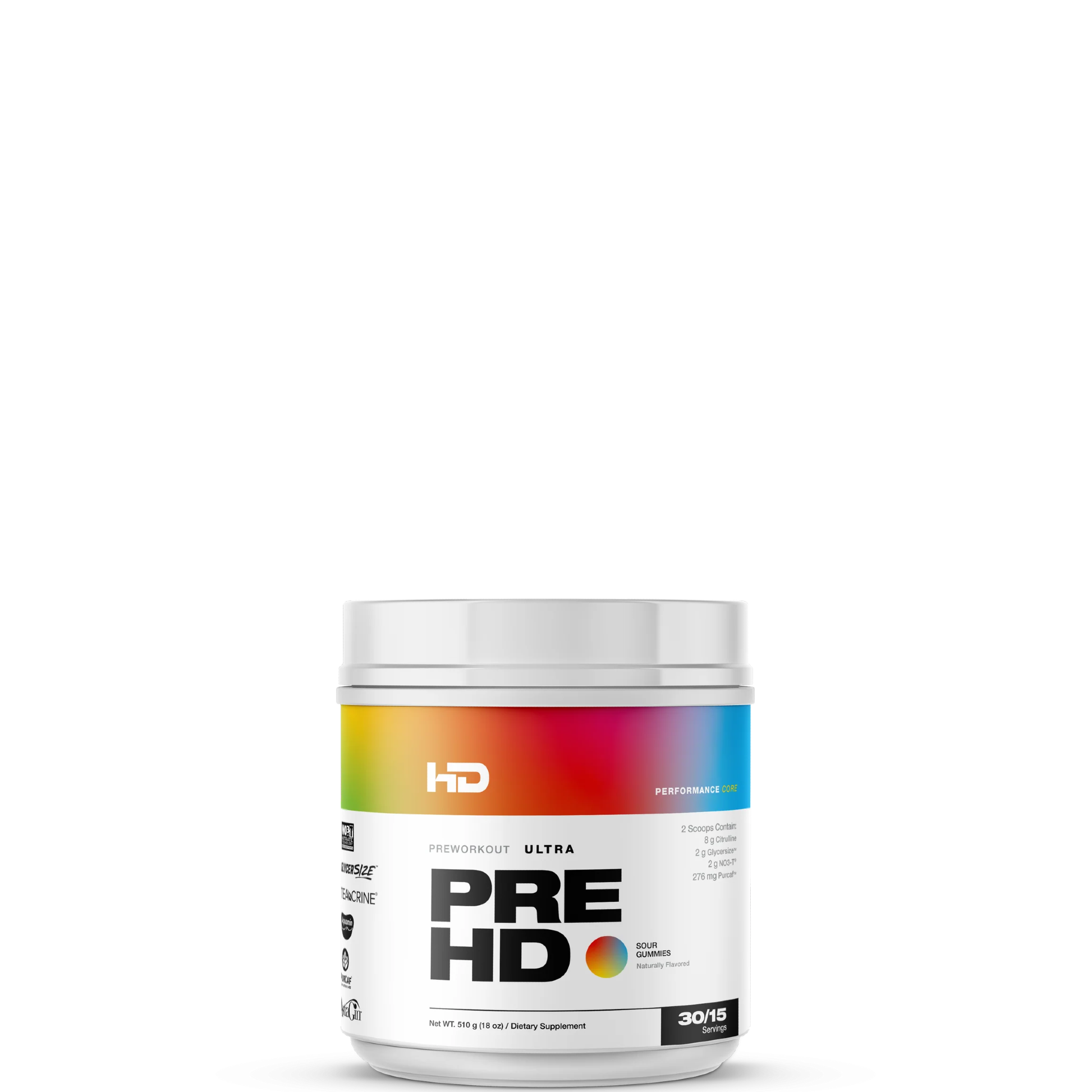 PreHD Ultra is a research backed, effectively dosed, fast acting ultra premium ergogenic aid truly worthy off the title “All in one pre-workout"—Hitting you literally in a matter of minutes, PreHD Ultra delivers a training experience like nothing else on the market today. The heavy dosed facts panel is a precise combination of patented and clinically researched ingredients that have been meticulously formulated together to deliver: