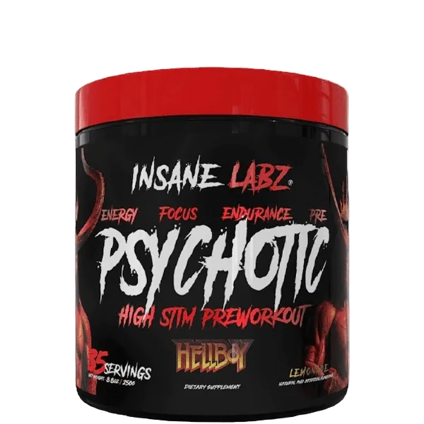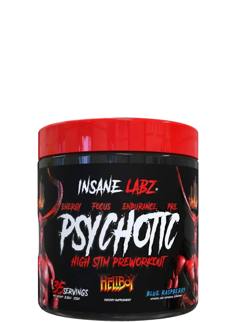Raise Hell In the Gym – With Insane Labz Psychotic HELLBOY Edition! ENERGY. FOCUS. ENDURANCE. PUMPS. Straight from the pages of Hellboy comes Insane Labz’ newest high stim pre-workout, Hellboy. Formulated for longer-lasting endurance and focus. THE RIGHT HAND OF DOOM. When Hellboy goes to the gym, of course, he uses Psychotic Hellboy. How do you think he defeats Baba Yaga? Fully dosed with Beta-Alanine to increase muscle endurance, Citrulline Malate to increase nitric oxide levels for vein bursting pumps, Infinergy to increase energy levels and stimulate thermogenesis. Last but not least, Insane Labz patented AMPiberry to smooth and absorb every last ingredient. THE FIRST OF ITS KIND. Psychotic Hellboy is the FIRST co-branded pre-workout based on a comic book superhero. We’re kind of a big deal. Caffeine content from all sources: 300mg