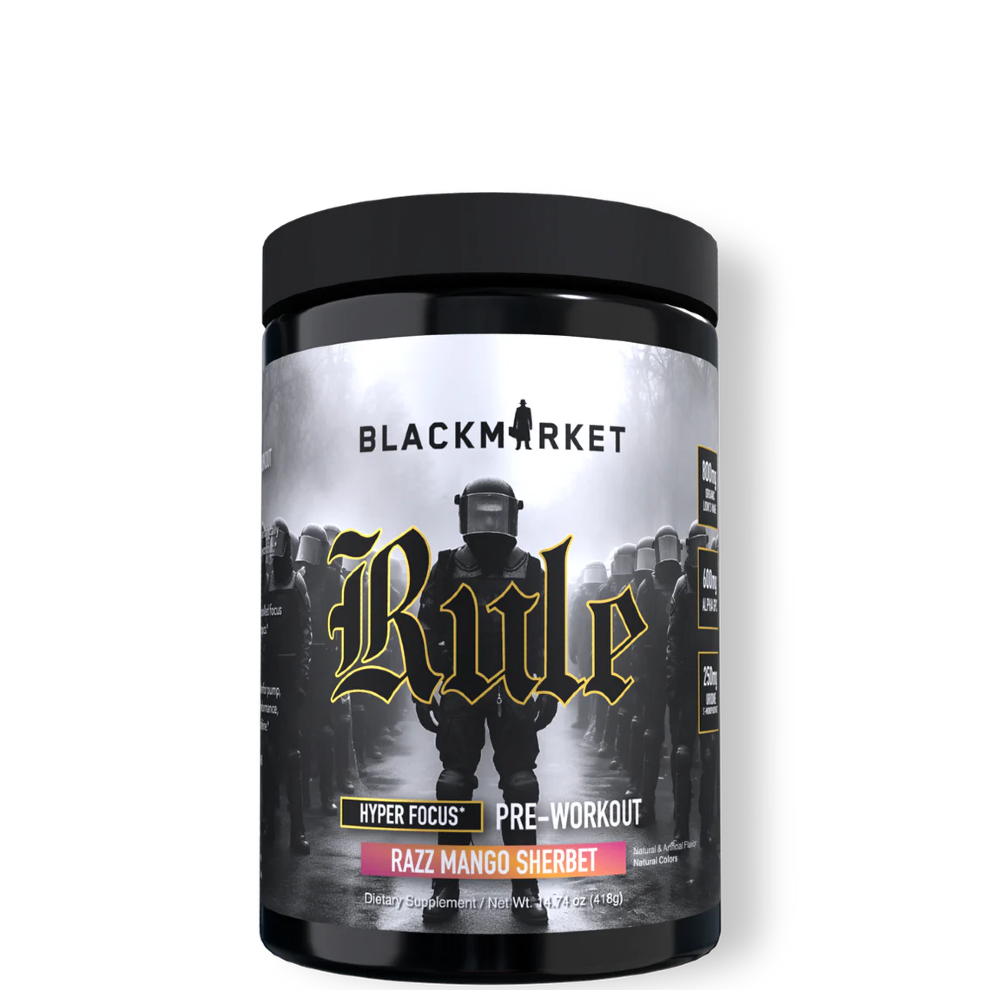 PURPOSE: RULE is our most concentrated hyper-focus pre-workout. Delivering premium and controlled focus from 8 different nootropic ingredients. Elevate your mind with this clinically dosed powerhouse of energy, relentless pump, and superior performance.*